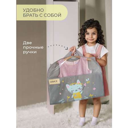 ЧЕХОЛ ДЛЯ ОДЕЖДЫ ДЕТСКИЙ НА МОЛНИИ С РУЧКАМИ 80 х 50 см серый с рисунком котик 1 шт .