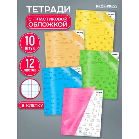 Тетрадь школьная Prof-Press в пластиковой обложке, клетка, 12 листов, 10 штук