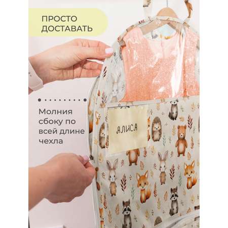 ЧЕХОЛ ДЛЯ ОДЕЖДЫ ДЕТСКИЙ НА МОЛНИИ С РУЧКАМИ 80 х 50 см бежевый с рисунком лес 1 шт.