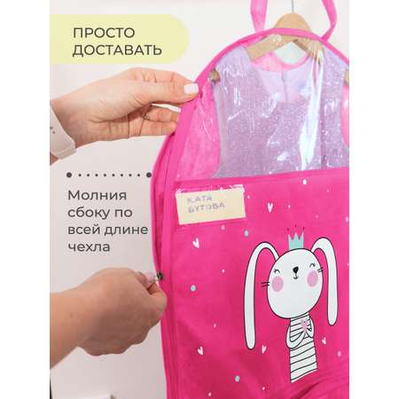 ЧЕХОЛ ДЛЯ ОДЕЖДЫ ДЕТСКИЙ НА МОЛНИИ С РУЧКАМИ 80 х 50 см розовый с рисунком зайка 1 шт.