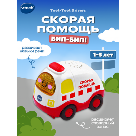 Интерактивная машинка "Скорая помощь" - специально созданная для маленьких рук ребенка машинка серии Бип-Бип Toot-Toot Drivers. В игрушке встроена световая кнопка, с помощью которой можно активировать музыку и звуки.