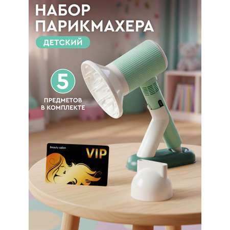 Детский набор парикмахера — это возможность для девочек и мальчиков развивать творческие способности и фантазию. В набор входит все, что нужно юным стилистам для создания причёсок куклам или друзьям: фен с насадками, удобная подставка для фена, карточка-визитка! Фен дует воздухом и шумит, как настоящий, что сделает игру еще интересней. А специальная подставка позволяет удобно разместить фен после завершения творческого процесса!