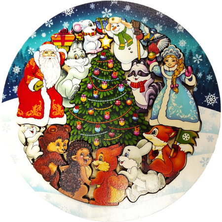 Деревянный зоопазл Новогодняя сказка - это развивающая и логическая игрушка головоломка для малышей. Пазлы детские изготовлены из дерева и содержат фигурки деда Мороза, Снегурочки и других лесных обитателей у новогодней елки.Каждая 3д фигурка имеет уникальный дизайн, что помогает развивать у детей логическое мышление и критическое мышление. Игра состоит из элементов пазлов, которые помогают развивать моторику рук и координацию движений. Деревянные игрушки помогут малышу познакомиться с животными, птицами и их жизнью.