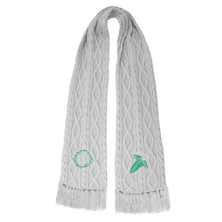 Выполненный в нежном оттенке серого, этот шарф — воплощение эльфийской утонченности и таинственности. На одном его конце красуется изящное тиснение в виде зеленого Листа Лориэна, а на другом — кольцо искусно вытканных изящных слов на синдарине, языке эльфов, повествующих о мудрости и загадках древнего мира Средиземья.