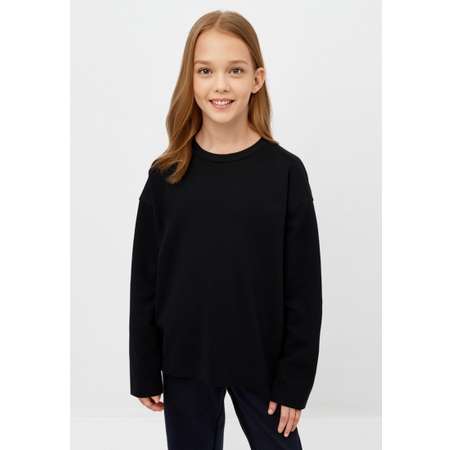Лонгслив для девочки MODIS черный с длинным рукавом из высокоплотного натурального хлопкового трикотажа.