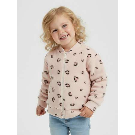Теплая толстовка для девочки с рисунком. Кофта изготовлена из ткани флис. В куртке воротник и застежка молния.