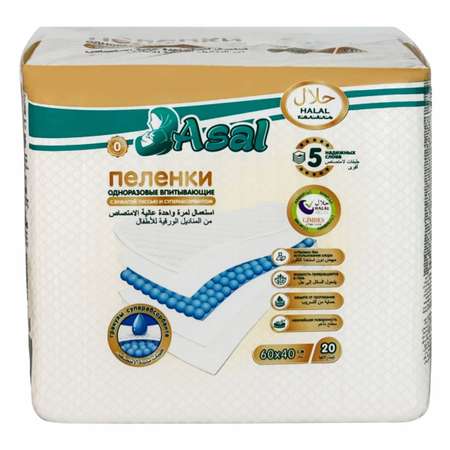 Пелёнки одноразовые ASAL 40х60 см 20 шт.