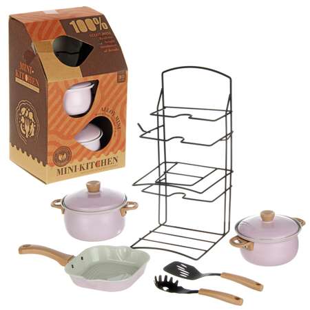Игровой набор металлической посуды для тематических игр. Компактный, оптимальный для детских ручек размер, большое количество предметов, детская посуда с удобными ручками. Долговечный материал металл, приятная расцветка и красивый дизайн. Игрушечная посудка, это отличный подарок девочке, набор поставляется в лаконичной и элегантной крафтовой упаковке.