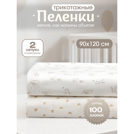 Набор пеленок трикотажных inlovery для новорожденных «Легкость» зайчики/сердца 95х120 см 2 шт