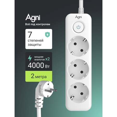 Три розетки: удлинитель Agni оснащен тремя розетками, что позволяет вам подключать несколько устройств одновременно и комфортно использовать их в одном месте.