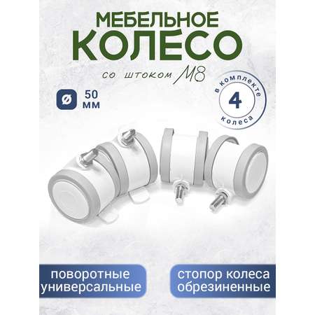 Колесо для детской кроватки, комода белое обрезиненное комплект 4 штуки. Мебельное колесо сделано из прочного пластика и предназначено для детской кроватки комода для новорожденного. Комплект мебельных роликов для детской кроватки так же подойдут для офисного кресла, компьютерных столов, для журнальных столиков, выкатанных тумб, тумб под ТВ . Набор колес для мебели состоит из 4 штук. Идеально подходят для диванов, кроватей, тумб. Каждое колесо для детской кровати рассчитана на статическую нагрузку до 30 кг. Комплект колес подойдут для офисных, компьютерных и игровых кресел. Обеспечивает бесшумное передвижение детской кроватки, не царапает паркет, ламинат, ковролин, кафель и безопасно для других поверхностей, защищает пол от повреждений. Сделаны из прочного пластика, прорезиненное. Резьба М8.
