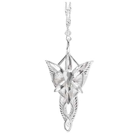 Подвеска «Свет вечерней звезды» воплощает магию эльфийского искусства. Изящная, украшенная кристаллами, она парит на тонкой серебристой цепочке, повторяя легендарный символ Арвен.