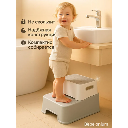 Напольный стульчик для ванны - это особенно надежная опора, если ребёнок только начинает свои первые шаги на пути к самостоятельности. Ступенька детская имеет два отдельных элемента, что позволяет регулировать высоту в соответствии с индивидуальными потребностями. Оба элемента имеют нескользящие широкие поверхности и прочное соединение, обеспечивая безопасность и комфорт при использовании. Вне зависимости от условий эксплуатации, она будет надежно стоять на своем месте, благодаря специальным накладкам на ножках, предотвращающим скольжение. Пластиковая ступенька для детей станет отличным аксессуаром для любого помещения - будь то детская, ванная комната, кухня или даже прихожая. С её помощью ваш малыш сможет самостоятельно добраться до раковины или унитаза. Подходит для унитаза разных размеров и форм. Предотвращает висячее положение ног, что предупреждает затекание и онемение. Ноги ребенка находятся в расслабленном и удобном состоянии. Высота данной модели позволяет детям использовать ее как лестницу трансформер или стул, чтобы дотянуться до высокой полки и достать игрушки или книжки. Подставку для детей можно также использовать в качестве мебели: маленького столика для игр или чтения, что придаст ей дополнительную функциональность и разнообразит досуг вашего ребенка. Она также может служить как табурет стремянка или стульчик детский - всё зависит от ваших потребностей. На поверхности нашей уникальной подставки вы найдете цифры и буквы английского алфавита. Каждое движение по этим ступенькам превращается в шаг к приобретению новых знаний. Ваш ребенок с радостью будет знакомиться с буквами и цифрами, исследуя волшебный мир слов и чисел. Подставка для детей выполнена из высококачественного пластика, что гарантирует его долгий срок службы и прочность конструкции. Подставку табурет также легко перемещать из одной комнаты в другую, благодаря удобным ручкам и легкому весу. Большим преимуществом является то, что модель складная, а значит она не займет много места при хранении. Эта универсальная подставка ступенька и ее каждая маленькая деталь станет отличным дополнением к интерьеру вашего дома и будет радовать своих юных пользователей каждый день!
