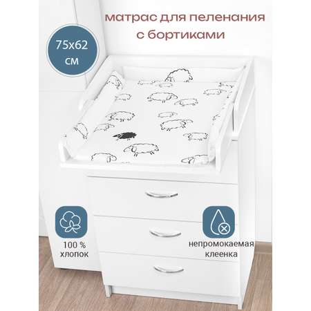 Мягкий матрасик для пеленания и переодевания, гигиенических процедур, принятия воздушных ванн, подготовки к купанию или массажу предназначен для детей с рождения 0+. Размер пеленальной поверхности 68х47 см, размер с бортиками 75х62 см., ширина бортиков 7,5 см. По нормам ГОСТ допускается погрешность в длине и ширине изделия +/-5 см. Водонепроницаемое покрытие прямоугольной формы состоит из наполнителя - холкон 35 мм., плотной медицинской клеенки с одной стороны, 100 % хлопок -бязь с другой. Чехол на матрасе двухсторонний , с одной стороны непромокаемая клеенка, с другой ткань ( 100 % хлопок, бязь). Пеленальный матрас (толщина 2,5 см) по размеру подходит для размещения на детском комоде шириной 60 см. Легкая накладка - пеленальник может располагаться на любой горизонтальной поверхности: на столе, обычном комоде, тумбе, родительской кровати, диване или другой удобной мебели. В отличие от пеленального комодика накладка удобна для переноски. Портативный матрац с водонепроницаемым покрытием удобно использовать для смены памперсов или подгузников новорожденному, или младенцу. Практичное изделие предназначено для новорождённых, малышей с рождения и детей до годика. Аксессуар из мягкого материала с защитной клеенкой можно использовать как дорожный матрас, удобный коврик для крохи, брать его с собой в поездки и путешествия на автомобиле. Располагая ребенка на матрасике, обращайте внимание на необходимость защиты в виде бортиков или контролируйте его нахождение неотрывно. Изделие сертифицировано в соответствии со стандартами качества, гипоаллергенно, в нем отсутствуют токсичные вещества, оно безопасно для детской кожи. Компактный матрасик легок и прост в уходе и чистке, его достаточно протирать тряпочкой с мыльным раствором и сушить естественным способом или вытирать. Произведено в России.
