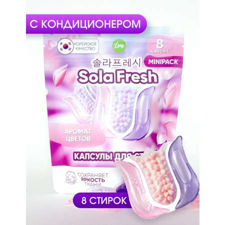 Капсулы для стирки Sola Fresh Lime «АРОМАТ ЦВЕТОВ» эффективно и бережно отстирывают цветные изделия, удаляя широкий спектр пятен (масляных, жирных, липких). Благодаря кондиционеру ополаскивателю в составе заботятся о мягкости белья, сохраняют структуру волокон, обеспечивают легкую глажку. А специальные аромагранулы придают вещам свежесть и восхитительный аромат.