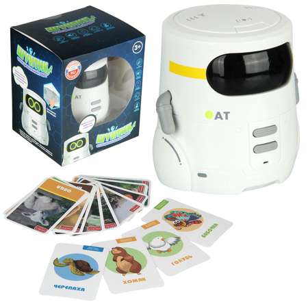 В наборе робот, 20 картонных карточек с изображениями животных, 1 картонная карточка с кратким перечислением функционала, подробная инструкция на русском языке, картонная карточка подсказка о признаках животных.