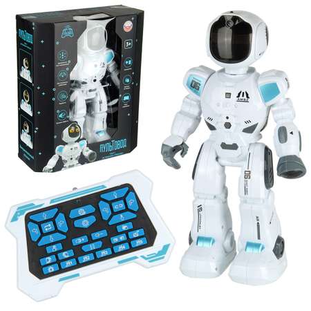 Робот на пульте управления с широким функционалом. Русская озвучка, передвижение во все стороны, поворот головы, деморежим, режим программирования, звуковой сенсор, реагирующий на хлопки в ладоши, регулировка уровня громкости, сенсорный датчик, погладьте робота по голове, передвижение и звуковые эффекты. 18 эмоциональных откликов, настроение робота выражается разными световыми изображениями на лице, разные голоса робота, проигрывает мелодии и песни, пульт удобно ложится в руки. Оригинальный дизайн, отличное качество исполнения, прочные и долговечные материалы, простой принцип работы.