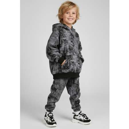 Комплект для мальчика с начесом включает в себя: худи с капюшоном и брюки. Пояс брюк на резинке и завязках. На худи спереди имеется карман-кенгуру.