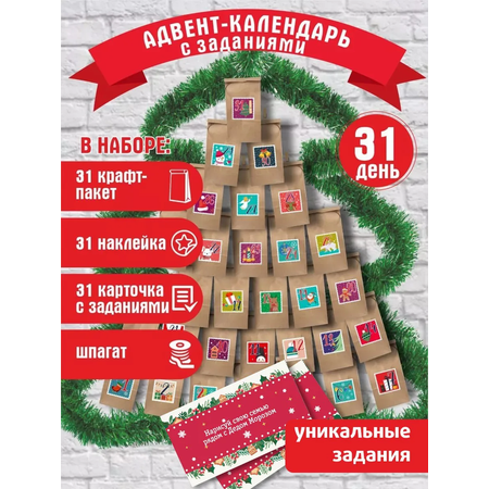 Подсказка дорогим клиентам: адвент - календарь лучше приобрести уже в ноябре, чтобы заранее подготовить сюрпризы в пакетики! Новогодние подарки близким и знакомым на Новый Год Лошади 2026 и Рождество - это всеми любимая традиция!) Каждый год мы приобретаем календарь, чтобы оптимизировать свои дни в новом году! Мы предлагаем оригинальный адвент календарь, который подарит Вам ощущения праздника уже за месяц перед новым годом!!! В наборе для адвент календаря детского собраны 31 маленьких бумажных небольших крафтовых пакетиков из плотной бумаги размером 24х12х8 см, 31 наклейка, 31 задание на каждый день + 5 пустых карточек для Ваших придумок, и шпагат для того, чтобы красиво подвесить календарь. Красивые и необычные бумажные адвент календарь пакетики идеально подходят для детских сладких рождественских подарков детям на Новый год Лошади - наборов конфет, киндеры, шоколадки и другие сладости и сюрпризы мальчикам, игрушки девочкам, косметика для подростков, или маленьких подарочных наборов с поделками – интересных мужских и женских сувениров для взрослых - Вы можете приобрести это ОТДЕЛЬНО. Используйте адвент-календарь не только для детей, но и для взрослых мужчин и женщин, коллег и начальников, преподавателей: учителей и учительниц в школе, воспитателей в детском саду (садике) и врачей, или для близких: родителей мамы и папы (отца), сестры или брата, подруги, любимой девушки, парня, жены, любимого мужа или ребенка (мальчика и девочки). Также такие календари на новый год 2026 подойдут и на другие праздники, можно положить красивые елочные украшения или наклейки. Набор придет Вам в целости, так как мы позаботились о сохранности товара, чтобы ничего не помялось при доставке. Даже небольшой недорогой подарок на нг или другой праздник будет смотреться празднично! Экологично и стильно! ВНИМАНИЕ – Вам потребуется СТЕПЛЕР или прищепки для фиксации пакетов!