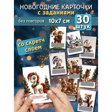 Набор открыток на Новый год Лошади 2026 - это новогодние подарки и отличный сюрприз детям и взрослым! Набор состоит из 30 разных дизайнов мини открыток, под скретч слоем спрятаны интересные новогодние задания. С нашими новогодними заданиями ожидать Новый год Лошади и Рождество будет гораздо интереснее и волшебно! Новогодние скретч открытки - записки с заданиями можно использовать для адвент календаря, так же можно придумать и свои задания, например написать "письмо Деду Морозу". Они подарят эмоции вам и вашим родственникам: брату, внуку, внучке, дедушке, дочери, жене, мужу, папе, маме, родителям, родным и близким, сестре, сыну, любимой женщине, подруге, любимому мужчине. Новогодние открытки можно использовать как подарок под елку на Рождество и открытки с Рождеством. Новогодная открытка станет приятным дополнением при оформлении подарков, букетов, для вложения в заказы, для рукоделия, адвент календарь, hande made, хобби, творчества, вязания, шитья и в свечи. В маленькой стильной минималистической карточке – открытке размером с карманный календарик, можно сделать отверстие и использовать как бирку при упаковке заказов, на обратной стороне сделать надпись и дополнить своими пожеланиями добра, или сказать «спасибо за заказ». Открытка с новым годом лошади может украсить вашу новогоднюю красавицу елку, послужить декором для стен, сделать красивую гирлянду с мишурой. Используйте как закладку для книг или как красивое дополнение к фотоконтенту, фотосессии. Новогодние мини открытки прекрасно подойдут в качестве дополнения к подарку учителю, воспитательнице, руководителю, коллеге. Открыточки - это проявление внимания клиентам салонов красоты, мастеров маникюра, косметологов, парикмахеров, бровистов, мастеров шугаринга, наращивание ресниц, стилистов-визажистов. Мини открытки с праздником нового года могут служить как бонус к заказу для Ваших клиентов на новый 2026 год лошади - спасибо за заказ, идеально подойдут к подарочку Вашим близким или коллегам.