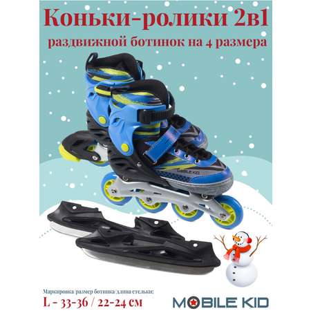 Универсальные всесезонные коньки 2 в 1 ледово-роликовые со сменным шасси для детей от 3-х лет