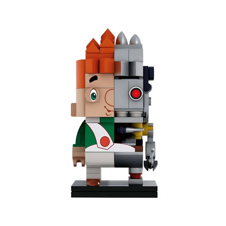 • Неожиданное перевоплощение: собранная фигурка сочетает мультяшную половину Карлсона с его кибернетическим обликом. Рыжие волосы, зеленая рубашка и белые брюки узнаваемы, но вместе с ними вы увидите металлические пластины, роботизированную руку и механический блок с пропеллером.