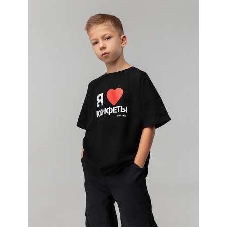 Свободная футболка с коротким рукавом. Подойдет как для мальчика, так и для девочки. Горловина футболки округлой формы. Принт на полочке " Я люблю конфеты". Материал: кулирная гладь.