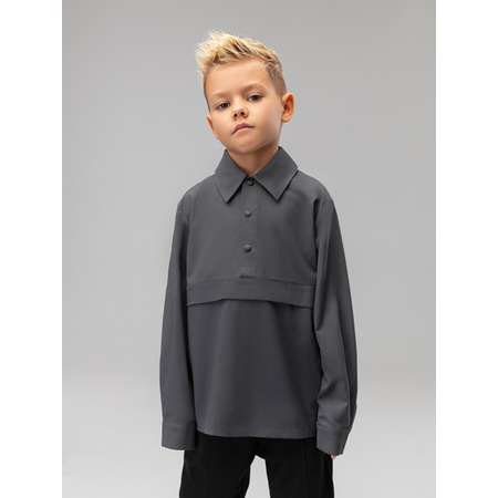 Классический воротник-стойка и свободный покрой придают рубашке аккуратный и опрятный вид, подходящий для различных случаев. Длинные рукава и отсутствие карманов делают ее удобной для активных детей. Благодаря универсальному серому цвету, рубашка легко сочетается с любой одеждой, а бережная машинная стирка при 30 градусах упрощает уход за ней.
