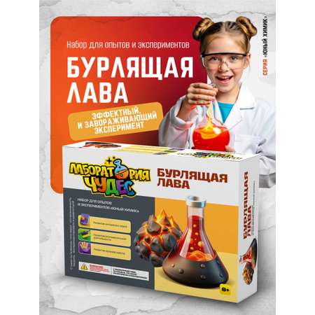В этом наборе представлено специальное лабораторное оборудование и химические вещества, с помощью которых ребенок в домашних условиях проведет интереснейший эксперимент - "Бурлящая лава", который напомнит настоящее извержение вулкана. Дава ть ребёнку новые знания можно даже в форме игры. Эксперимент также может стать прекрасным развлечением для детского дня рождения, которое паразит всех гостей и вызовет на их лицах удивление.