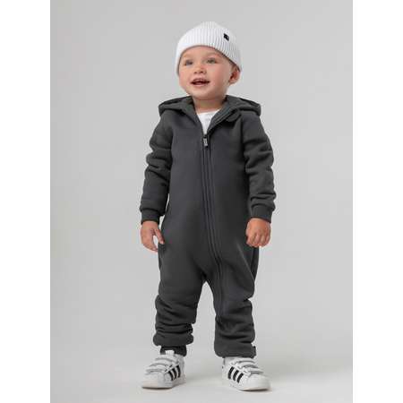 Стильный утепленный комбинезон для малышей, для новорожденных (с 0 месяцев до 1,5-2 лет, в зависимости от роста) выполнен из футера 3-х нитка с начесом, приятного и гладкого на ощупь, благодаря чему кожа ребенка дышит и не раздражается.