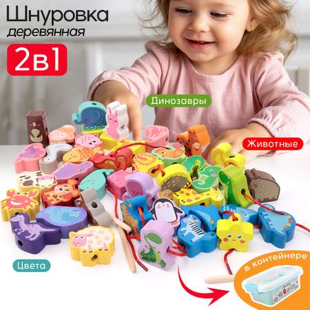 Подарите ребёнку яркий и полезный досуг с развивающей деревянной шнуровкой! В комплекте — весёлые фигурки животных и динозавров, каждая с отверстиями для нанизывания на прочный шнурок. Игра не только увлекает, но и помогает малышу развивать важные навыки: координацию, моторику, логику и внимание.