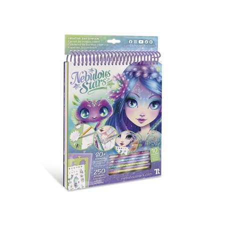 Комплектация: 35 страниц с эскизами, более 80 трафаретов, 3 рисунка для втирания, 250 наклеек, 5 цветных карандашей, 8 техник для рисования, полная история звёздочки Nenuphia, инструкция.