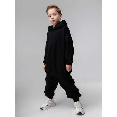 Костюм детский. Толстовка - худи без застежек, свободный покрой, несъемный капюшон, длинный рукав со спущенным плечом. Брюки свободные, низ на манжетах, карманы с отрезным бочком. Состав: футер двухнитка 92% хлопок 8% лайкра