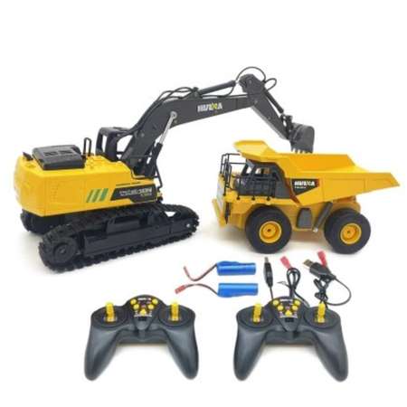 Радиоуправляемый набор экскаватор и самосвал (свет, звук, акб, 1:24) - это набор строительных машин с дистанционным управлением для детей включает в себя экскаватор с дистанционным управлением и перезаряжаемой батареей, а также карьерный самосвал с дистанционным управлением и перезаряжаемой батареей. Кроме того, в этот набор входят два пульта дистанционного управления и два зарядных кабеля. Ваш ребенок достоин двойного удовольствия от игры с друзьями.