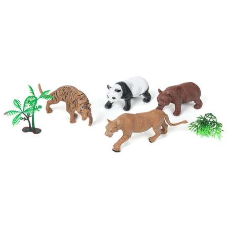 - деревья и 4 фигурки в комплекте: медведь, львица, тигр, панда