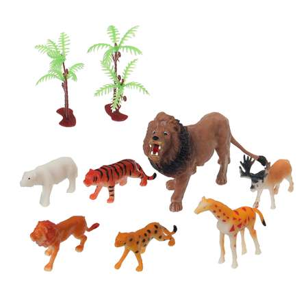 Пластизолевые игрушки ТМ «Играем вместе» – копии реальных рептилий, зверей, птиц и насекомых. Благодаря таким фигуркам, можно легко и весело познакомить ребёнка с дикими животными и их особенностями, повадками. Игрушками из пластизоля можно играть на улице и в ванной, они не промокают и легко моются. В набор «Дикие животные» входят: лев – 13 см, жираф – 5 см, тигр – 7 см, лось – 5 см, леопард – 6 см, медведь – 6 см, маленький лев – 6 см.