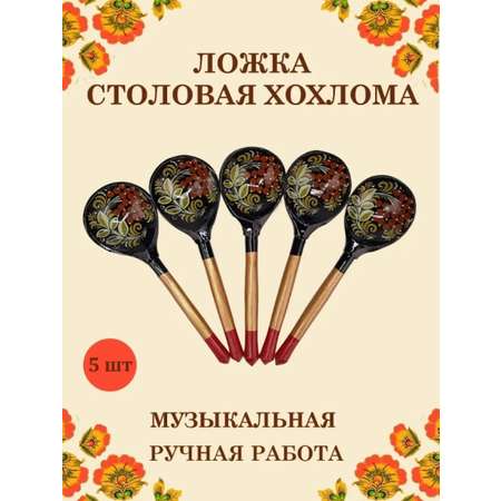 Ложка деревянная средняя Хохлома Оптом музыкальная Рябина желтые листья- 5 шт.