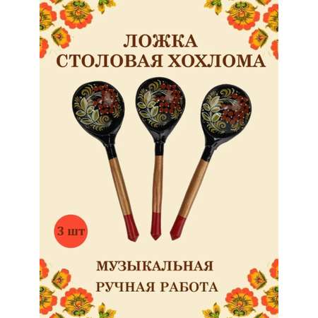 Ложка деревянная средняя Хохлома Оптом музыкальная Рябина желтые листья- 3 шт.