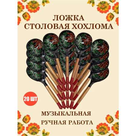 Цена на Ложка деревянная средняя Хохлома Оптом музыкальная Рябина зеленые листья- 20 шт. - 3340 ₽.