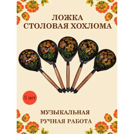 Цена на Ложка столовая Хохлома Оптом деревянная расписная желтый цветок - 5 шт. - 815 ₽.