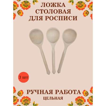 Цена на Ложка столовая Хохлома Оптом Под покраску цельная 3 шт. - 485 ₽.