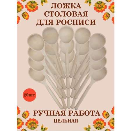 Ложка столовая Хохлома Оптом Под покраску цельная 20 шт