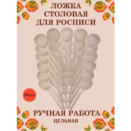 Цена на Ложка столовая Хохлома Оптом Под покраску цельная 30 шт - 3570 ₽.
