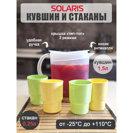 Набор Solaris кувшин 1,5л и 4 стакана 0,25л.