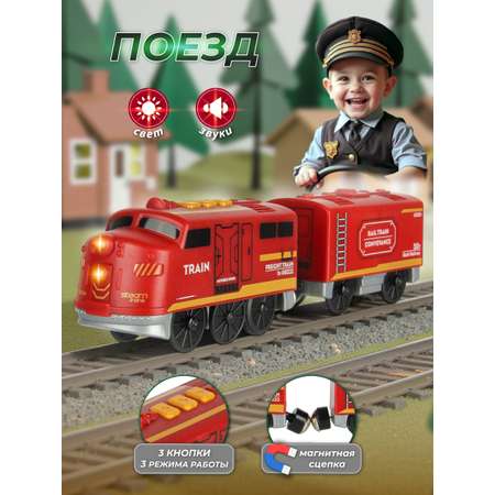 Локомотив с движением вперед, назад, красивой подсветкой носового фонаря, звуками гудка, железнодорожного переезда.