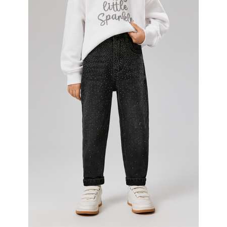 Джинсы Mom для девочек изготовлены из 100%-ного хлопкового денима, который прекрасно подходит для повседневного ношения. Детские серые джинсы с внутренней эластичной лентой в поясе позволяют отрегулировать посадку на разные типы фигуры, а эластичная лента сзади обеспечивает комфортное прилегание. Модель застегивается на молнию и кнопку, позволяя девочке легко одеваться самостоятельно. Джинсы с высокой посадкой отлично подходят для ношения в холодное время года. Детские джинсы со стразами дополнены четырьмя карманами: двумя боковыми и двумя накладными на спинке. Спереди джинсы украшены россыпью сверкающих серебристых страз, которая придает образу оригинальную нотку и делает образ ярче. Джинсы со стразами составят стильный повседневный образ в паре с белым свитшотом (20220170168). 20220440116 20220440116