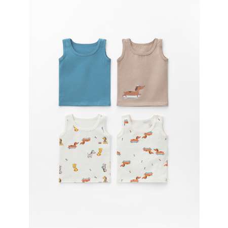 Майки для мальчика комплект из четырех штук. Набор маек выполнен из 100% натурального хлопка, удобная мягкая окантовка, полуприлегающий комфортный фасон, широкие бретели. Нательная модель имеет натуральный состав - гипоаллергенный премиум хлопок, тонкий хлопковый трикотаж хорошо впитывает влагу, удобный классический крой не сковывает движений, позволяя телу ребенка дышать, не вызывает раздражение и аллергических реакций. Маечки детские универсальные и практичные, отлично комплектовать с боксерами из нашей коллекции нательного белья для мальчиков Lesi kids.