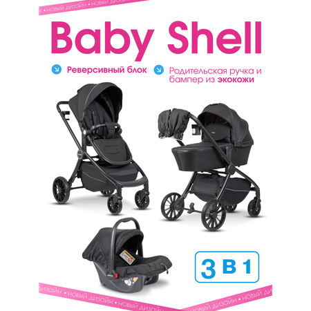 Обновлённая модульная коляска Baby Shell 3в1 - универсальный вариант для детей с рождения и до 3 лет. Коляска состоит из спального модуля, прогулочного блока и автокресла.