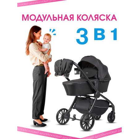 Обновлённая модульная коляска 3в1 - универсальный вариант для детей с рождения и до 3 лет. Коляска состоит из спального модуля, прогулочного блока и автокресла.