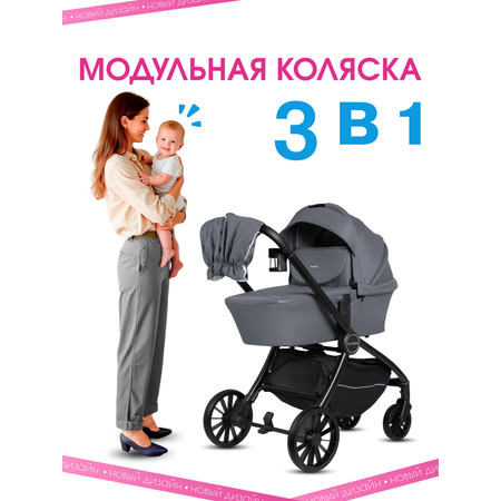 Коляска 3в1 Farfello для новорожденных серый
